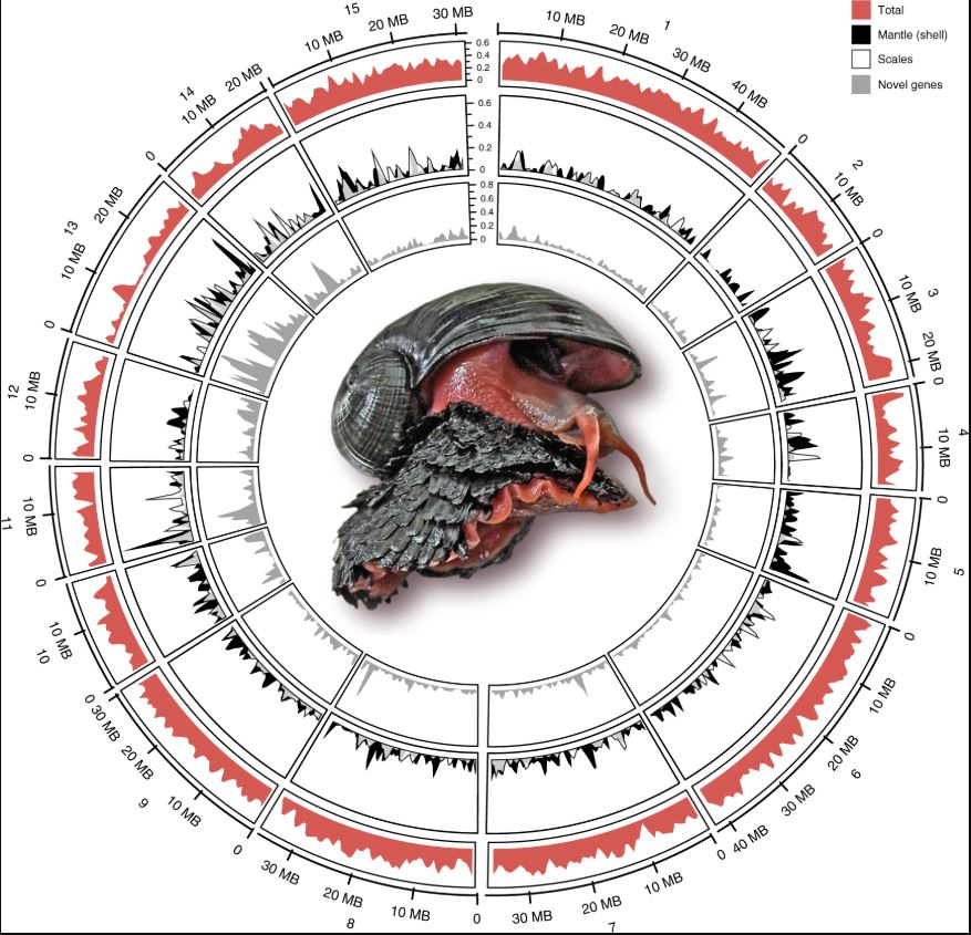 Featured Image: Genome of the Scaly-foot Snail. Image from Sun et al. 2020.